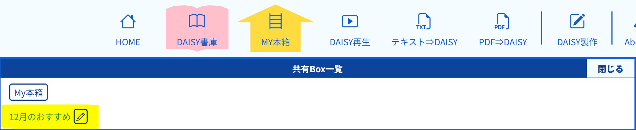 共有Boxは、MY本箱の図書を、他のユーザーに配布するサービスです。全ユーザーが、利用することができます。