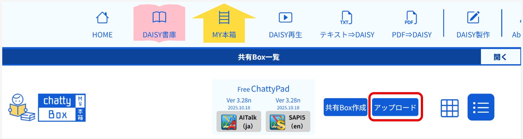 ※2 MY本箱にある図書の『読む』ボタンで開くDAISYプレイヤー ChattyBooks のファイルです。