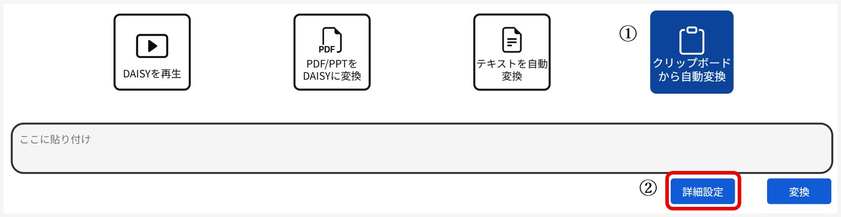 ※ 『詳細設定』については、「PDF/PPTをDAISYに変換」をご覧ください。