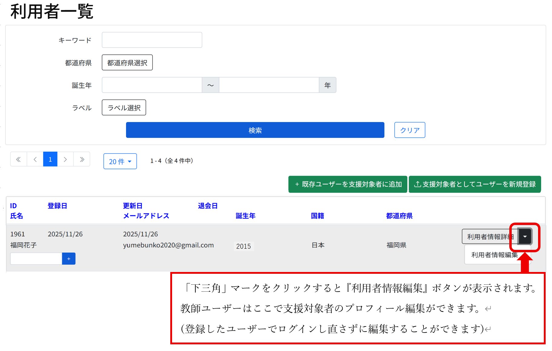 1.『既存ユーザーを支援対象者に追加』を選択した場合