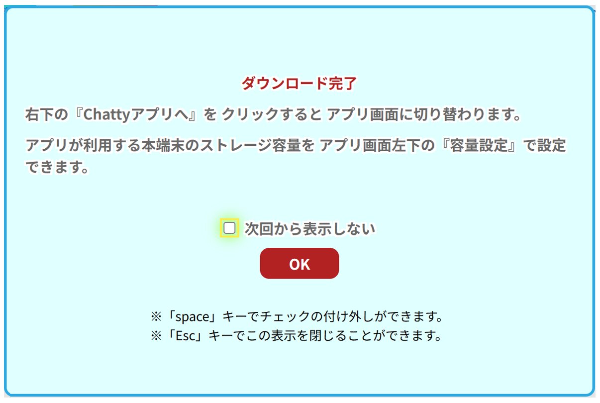 - 右下の『Chattyアプリへ』を クリックすると アプリ画面に切り替わります。