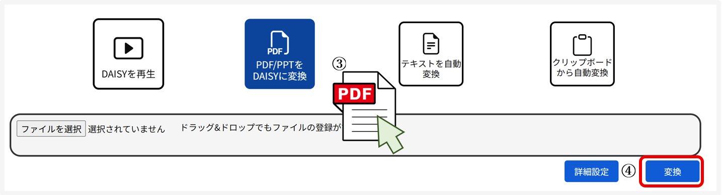 ① 『PDF/PPTをDAISYに変換』を選択します。