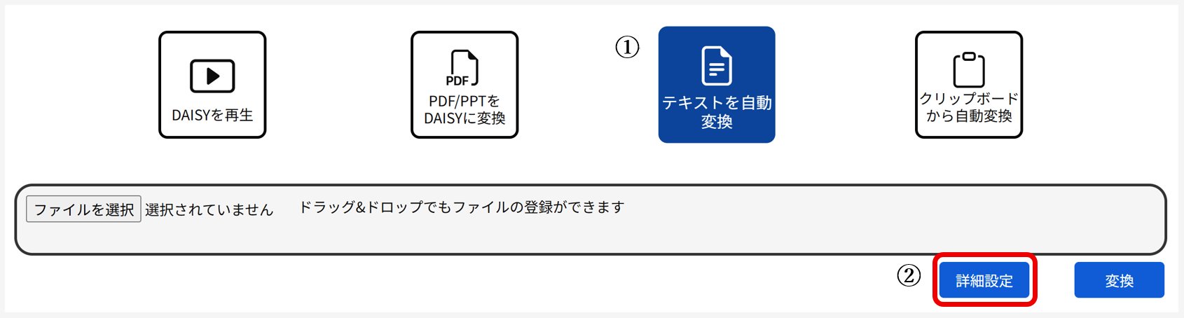 ※ 『詳細設定』については、「PDF/PPTをDAISYに変換」をご覧ください。