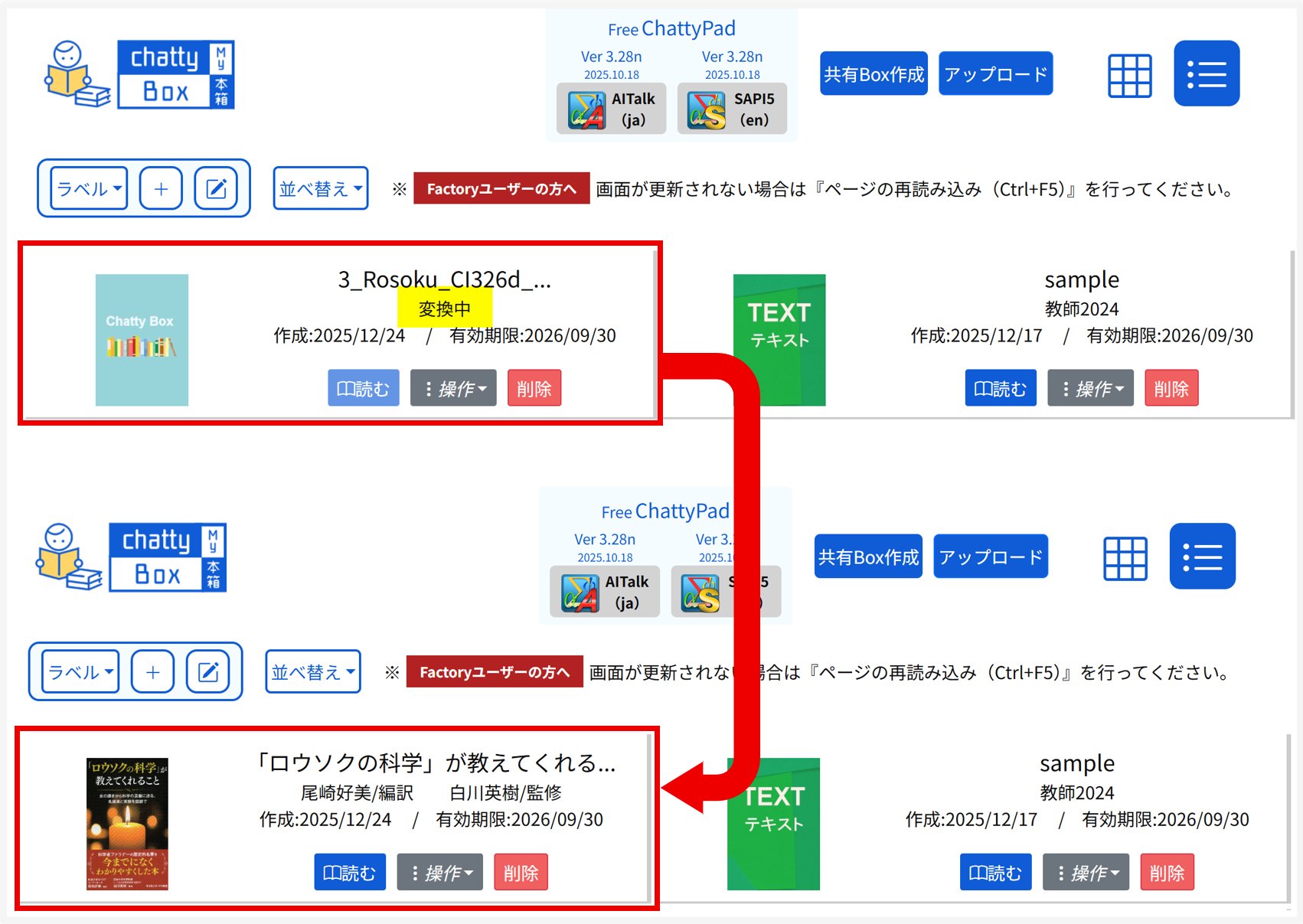 ※2 MY本箱にある図書の『読む』ボタンで開くDAISYプレイヤー ChattyBooks のファイルです。