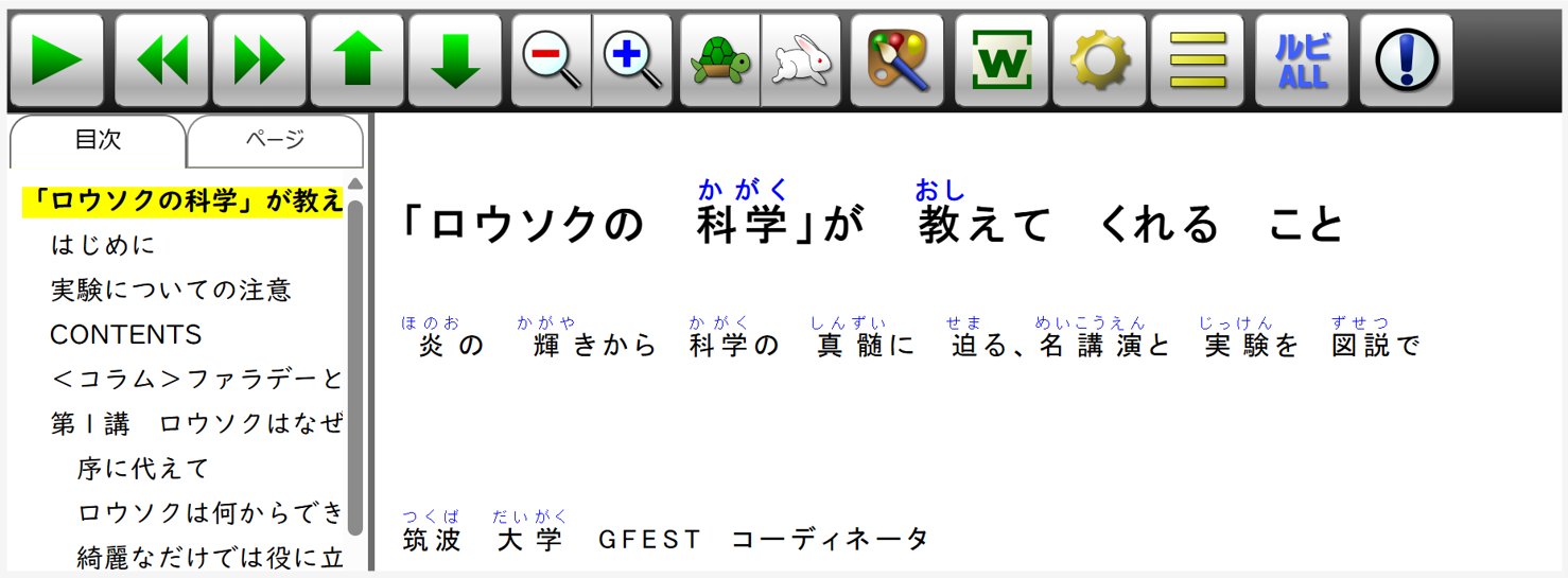 - リフロー:テキスト化して、適宜、図や表が挿入されます。すべての漢字にルビを付けることができます。
